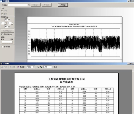 1. 显示误差实时曲线; 2. 长度超差报警; 3. 打印整卷误差曲线; 4. 打印所有超差版距的位置和超差长度